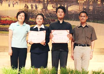 熊英部长(左一)、陆娟娟处长(右一)为三等奖获得者颁奖
