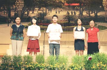 陈贵英部长(左一)、于海平部长(右一)为二等奖获得者颁奖