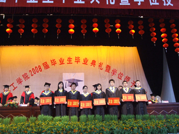 6月24日上午,我院2008届毕业生毕业典礼暨学位授予仪式在体育馆三楼礼堂隆重举行。学院院长赵艳林,学院党委副书记、纪委书记赵君,学院副院长李祥清,学院党委委员、院长助理、人事处处长华桂林,院长助理、土木系主任陈学军,研究生处、招生就业处、科技处、学工处等部门领导和学院学位委员会成员在主席台就座。学院党委副书记张学洪主持了毕业典礼暨学位授予仪式。 毕业典礼暨学位授予仪式在庄严雄壮的国歌乐曲中开始。赵君副书记宣读了《关于表彰2008年度全区普通高等教育优秀大学毕业生的决定》和《关于表彰2008年度学院优秀大学毕业生的决定》,李祥清副院长宣读了2008年我院志愿服务西部计划学生名单。随后,在主席台前排就座的领导为优秀大学毕业生代表和2008年我院志愿服务西部计划学生进行了颁奖。学院学位委员会秘书长、研究生部主任刘康怀宣读了2008年毕业生毕业资格、学位授予情况审查报告。材化系张先来同学代表2008届毕业生作了发言,表示将会永远牢记母校的教诲和嘱托,努力为社会做出自己应有的贡献,为母校争光。 赵艳林院长发表了讲话。他首先代表学院党委、学院行政向全体毕业生致以最热烈的祝贺,也向为同学们的成长倾注无数心血和汗水的老师们表示深深的敬意和衷心的感谢,并向同学们提出了几点希望: 第一,要勤奋工作,爱岗敬业,报效祖国,奉献社会。 要发扬“艰苦创业、敬业奉献、团结协作、开拓创新”的桂工精神,干一行爱一行,在平凡的工作岗位上建功立业,把自己的理想追求和人生价值融入到祖国和人民的伟大事业中去,创造无愧于祖国,无愧于人民的业绩,用青春和智慧书写人生最壮丽的历史新篇章。 第二,要适应环境,转换角色,加强学习,提高能力。要迅速熟悉工作环境,了解工作性质,认清工作责任,迅速完成从学生到工作人员的转换,自觉地让自己去适应环境而不是让环境来适应自己。要牢记学习,学会学习,要活到老,学到老,因为只有不断的学习,才能站在时代的潮头,才能以良好的姿态接受未来的挑战;也只有学习,才能找到更好的工作方法,才能比别人取得更大的成就。 第三,要加强修养,提高品德,严于律己,相信自我。要通过不断加强修养和提高品德,努力做到与环境和谐、与人和谐、与社会和谐,为事业的成功营造良好的条件与氛围。 赵艳林院长指出,学院当前正在为实现“两申”目标、努力创建高水平大学而努力奋斗,这是时代赋予我们的庄严使命,也是学院振兴发展的必然选择。学院的建设发展固然要靠在校师生员工的艰苦奋斗,同时也离不开社会各界,特别是校友们的关心、支持和帮助。他说,“桂林工学院的每一点发展和进步,都饱含着校友们的心血和汗水。过去、现在是这样,将来更将如此。希望同学们在离开学校之后,无论走到哪里,都要继续关心、支持桂工,为桂工的建设和发展出谋划策。同时,同学们走出校门之后,桂林工学院作为你们的母校,她也会永远象母亲一样支持你、培育你、思念你、欢迎你。同学们在这里度过了美好的大学生活,这里就是你们的人生驿站,母校永远做你们的坚强后盾,桂工永远是你们的家!” 最后,进行了学位授予仪式,学院院长、学院学位评定委员会主席赵艳林教授分别向学士学位获得者代表和全体硕士学位获得者授予学位、颁发证书。 据悉,在我院2008届4526名毕业生中,有1019名同学光荣地加入了中国共产党;有8名同学参加西部服务计划;有152名同学被浙江大学、同济大学和中国科学院等大学或科研院所录取为硕士研究生;有24名硕士研究生被同济大学等高校录取为博士研究生;有52名同学获得自治区级优秀大学毕业生称号,有277名同学获得校级优秀大学毕业生称号。