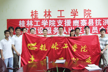 6月24日上午,我院召开支援鹿寨县抗洪救灾建设服务队出征动员会议。出席动员会的领导有学院党委副书记张学洪,院长助理、土木系系主任陈学军,党办(院办)主任、土木系党总支书记莫坷,土木系党总支副书记代武社。16名服务队员和带队老师参加会议。会上,张学洪副书记为即将出征的服务队授旗。 土木系党总支书记莫坷、系主任陈学军在会上都强调,服务队一切行动要听从当地党委、政府的安排,把这次活动当作强化自己专业知识、全面提高自己能力和素质的绝好机会,克服一切困难,全身心投入,以实际行动实践我院为地方经济建设服务的宗旨。 张学洪副书记强调,服务队一定要注意安全,只有在保证安全的前提下才能更好地开展工作;要以高度的责任感和使命感完成好这次任务,为广西、为鹿寨县的抗洪救灾作出应有的贡献。 我院支援鹿寨县抗洪救灾建设服务队已于6月24日中午出发。本次服务队成员以我院土木系城市规划专业学生为主,本次活动将重点对鹿寨县受洪灾严重破坏的村庄进行地形现状调研分析和规划。