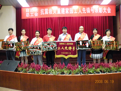 日前,自治区总工会召开抗震救灾重建家园工人先锋号表彰大会,为获得“全国工人先锋号”、 “广西工人先锋号”的先进集体颁奖授旗。我院同时获得“全国工人先锋号”、 “广西工人先锋号”荣誉称号。 “5.12”四川汶川特大地震发生后,我院迅速作出反应,在学院党委、行政的带领下,立即开展了支援灾区抗震救灾工作。我们举行了全院师生员工的万人募捐大会;启动了地震灾区学生情况调查和安抚工作,开展了为受灾地区同学募捐活动;成立了支援四川灾区抗震减灾技术专家组,并应受灾地区政府之邀派出工作人员深入灾区开展抗震救灾、重建家园的相关技术工作;举行了向震灾遇难同胞哀悼等一系列活动。用实际行动体现了我院师生员工识大体顾大局,舍小家保大家,为国分忧,为灾区人民尽力的良好精神风貌。 在自治区总工会《关于授予抗震救灾重建家园“广西先锋号”的决定》(桂工发〔2008〕48号)中希望受到表彰的单位珍惜荣誉、谦虚谨慎、发扬成绩、再接再厉、奋力夺取抗震救灾重建家园的全面胜利。希望全区广大职工以他们为榜样,立足本职、勤奋工作,艰苦奋斗、争创一流,团结协作、甘于奉献,充分发挥工人阶级的主力军作用,为建设富裕文明和谐新广西作出新的更大的贡献。