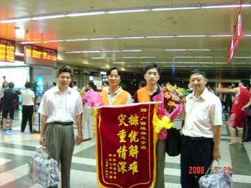 5月21日晚,我院首批前往四川灾区抗震减灾的技术专家王磊、肖桂元,在圆满完成灾区房屋安全检测任务后,带着灾区政府赠予的“排忧解难 灾重情深”锦旗,平安返回桂林。 四川汶川5.12特大地震发生后,虽然有些房屋受损较轻,但地震的强烈程度和不断出现的余震,让灾区人民产生了极度恐慌的心理,人们都不敢进入房屋中生活。在这种情况下,房屋的安全检测成为安置灾民中迫在眉睫的事情。学院成立支援四川灾区抗震减灾技术专家组后,四川省郫县人民政府与我院联系,要求派专家帮助进行房屋的安全检测。学院马上派王磊、肖桂元两位专家前往郫县参加抗震减灾。在灾区的5天中,两位专家凭借扎实的防灾减灾专业知识和丰富的实践经验,与其它单位的专家们不怕艰苦,每天工作15个小时,顶着风雨、冒着余震的威胁,对郫县各个乡镇和县城的公用建筑、民用建筑进行了拉网式的安全排查、检测,提出了对受损房屋的处理意见,圆满完成了当地政府交给的任务。他们的工作,为当地政府安置灾民做出了应有的贡献,而他们身处震区的工作和生活,极大地稳定了当地人民灾后的恐惧情绪。为此,中共郫县县委、郫县人民政府向我院赠予“排忧解难 灾重情深”的锦旗,表彰了我院为抗震减灾做出的贡献。 学院党办、院办主任莫坷和学院支援四川灾区抗震减灾技术专家组办公室主任、科技处副处长刘宝臣到飞机场迎接两位专家,并向他们献上鲜花表示了崇高的敬意。