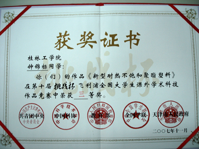 11月19日,第十届“挑战杯”全国大学生课外学术科技作品竞赛在天津市体育馆闭幕。我院参赛的五件作品取得优异成绩,获得一等奖一项,二等奖一项,三等奖三项,总分180分,位列广西参赛高校首位,这是我院学生参加这项赛事10年来取得的新突破和最好成绩。