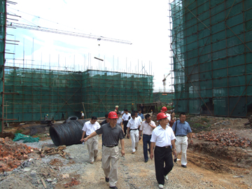 7月18日上午,学院党委书记黎志逘带领学院相关职能部门负责人到雁山校区检查一期工程第二批项目建设情况并对下一步工作做了指导。同行的还有学院党委副书记、纪委书记赵君,院长助理、人事处处长华桂林。在雁山校区值班的学院副院长、雁山校区建设指挥部指挥长肖明贵,院长助理、雁山校区建设指挥部副指挥长、土木系主任陈学军,基建处副处长刘宜河一起陪同黎书记一行检查并介绍了建设基本情况。 黎志逘书记带领大家分别到正在建设的学生宿舍、教学楼、科技楼察看在建情况,了解建设进度,他特别强调要保证安全第一、质量第一、速度第一。在雁山校区建设指挥部会议室,黎书记在听取了陈学军副指挥长对建设情况的介绍和各部门对雁山校区下一步工作的计划和安排后认为,雁山校区建设责任重大,使命光荣。他强调指出,一是对全部建设工程量要有科学、准确的估量;二要确定目标,落实任务,制订措施;三要进行任务分解,责任到人;四是突出重点,兼顾全盘,重点项目与配套工程要同步进行;五是各部门要围绕自身任务紧密配合。黎书记最后要求大家,要按照学院党委的部署和学校的既定目标,发扬特别能战斗的吃苦耐劳精神,增强责任感和使命感,顾全大局,齐心协力,同舟共济,全面做好雁山校区建设各项工作。