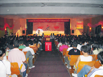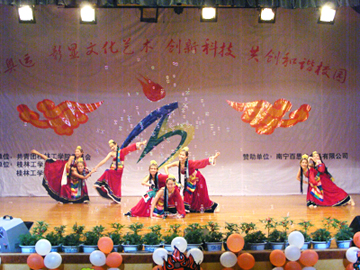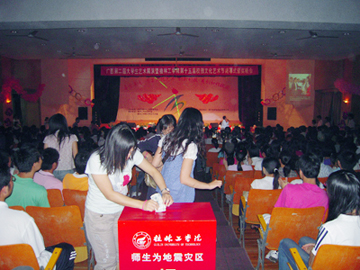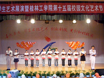 正值全国人民以各种方式支援四川地震灾区的时候,广西第二届大学生艺术展演暨桂林工学院第十五届校园文化艺术节闭幕式颁奖晚会于5月17日19:30,在学院屏风校区南校区礼堂隆重举行。这不仅是一场“喜迎奥运,彰显文化艺术;创新科技,共创和谐校园”的晚会,更是一场大型的关爱活动,参加晚会的学院领导和各系(院)领导、学工干部带头,向我院来自地震灾区的91名学生伸出了援助之手,表达了关爱之情。 学院党委张学洪副书记首先为闭幕式颁奖晚会致辞,他在肯定了本届校园文化艺术节可喜成果的同时,对当前四川的灾情和受灾的人们表达了深切的关心,并号召广大师生与我院来自地震灾区的91名同学同舟共济,共度难关,向他们伸出援助之手,奉献自己的一片爱心。随后,一首《爱,因为在心中》大合唱拉开了晚会的序幕。一时间,爱的情绪在全场观众的心中激荡。 晚会共分为奥运中国、和谐校园、扬帆起航三个篇章。演员们精心准备的节目精彩纷呈,引人入胜:慷慨激昂的《我骄傲,我是中国人》朗诵再现了中华儿女的一片赤诚爱国之心,尤其表现了众志成城、万众一心抗击震灾的意志和决心;歌曲《黄种人》表现的是中国人的一片豪情;舞蹈《摆啊摆》让人的思绪也随之飘向遥远的远方,飘向美好的未来;蕴含着吉祥如意的舞蹈《格桑梅朵》在传神地把藏族少女的风姿展现得淋漓尽致的同时,也表达了对四川震灾地区人民的深深祝福;校园短剧《永不放弃》表现了大学生永不言弃的青春风采,深深地感动了在场的每一个人。此外,来自艺术团的街舞表演和来自博文管理学院的变脸节目更是点燃了全场热情,博得现场阵阵喝彩。 激情四溢的晚会现场还进行了捐款活动,在张学洪副书记的带领下,老师和同学们为学院91名来自地震灾区的同学献上一份爱心。学院领导及老师要用关怀和慰问、广大同学们要用关心和祝福,帮助来自地震灾区的同学克服困难,早日走出阴影,度过难关,重新过上幸福美满的生活。在节目演出中,同学们还纷纷捐款。截至晚会结束,捐款金额已达5500余元。 晚会还穿插了颁奖环节,领导嘉宾为本次校园文化艺术节系列活动中获奖的单位及个人进行了颁奖,一张张奖状见证着校园文化艺术节走过的每一步,见证着广大同学在文化艺术的世界里每一刻的精彩。晚会最后,各节目演员及全体工作人员一起上台合唱《We are ready》,正如歌曲所唱“面对未知的挑战,我们已作好准备,面对未来,我们蓄势待发”。在欢快而振奋人心的歌声中,礼炮齐鸣,礼花齐放,广西第二届大学生艺术展演暨桂林工学院第十五届校园文化艺术节闭幕式颁奖晚会在桂工学子对奥运的殷切期盼中、对灾区人民及身边来自灾区的同学的深情祝福中、对祖国未来满怀希望中圆满结束。 一首首歌、一支支舞,一声声豪迈、一句句柔情,桂林工学院第十五届校园文化艺术节闭幕式晚会不仅给我们提供了一道视觉盛宴,它还谱写了校园的和谐之曲,奏响了校园文化艺术的青春之歌,至此,历时一个月的广西第二届大学生艺术展演暨桂林工学院第十五届校园文化艺术节在希望和梦想中划上了圆满的句号。 此次活动由共青团桂林工学院委员会主办,桂林工学院学生会、大学生艺术团共同承办。出席本次晚会的嘉宾有:学院党委张学洪副书记、学院团委辛立章书记、学院党委宣传部钟克庆副部长、学生工作处叶昊副处长,各系(院)党总支副书记、分团委书记,桂林各高校学生会代表、社团工作委员会副书记、大学生社团联合会理事长以及各系(院)学生会主席。 校园文化艺术节是我院两年一届的大型系列活动,它不仅是对同学们文化艺术水平的一次大检阅,也是对我院素质教育开展情况的一次大检阅。在学院“两申”工作紧锣密鼓地进行的同时,校园文化艺术节的开展为展现我院学生积极进取、健康向上的精神风貌提供了广阔的舞台。而本届校园文化艺术节营造的和谐氛围又将在对四川震灾的关爱中不断地延伸着。