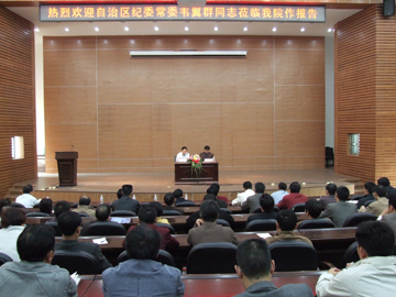 为进一步加强对党员干部的思想政治教育,切实抓好领导干部的作风建设,提高党员干部拒腐防变的能力,10月30日下午,应学院党委的邀请,自治区纪委常委韦翼群在学院图书馆报告厅作了廉政教育报告。报告会由学院党委副书记、纪委书记赵君主持,学院党委副书记张学洪,副院长李祥清、肖明贵,院长助理华桂林、陈学军出席会议,副处以上领导干部和机关全体党员参加了会议。 韦翼群常委的报告举实例、讲实事,析根源,内容发人深省,具有强烈的警示作用。并希望广大党员干部,一定要牢固树立公仆意识,为人民掌好权、用好权,时刻牢记党的为人民服务的宗旨,提高拒腐防变的能力,为学院的发展贡献自己的智慧和力量。