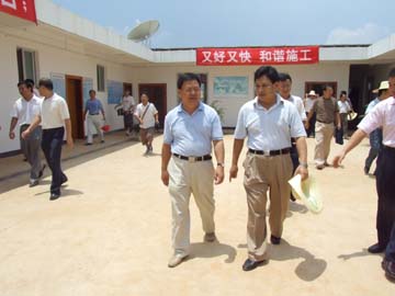 余益中厅长(前中)在黎书记(前左)、肖副院长(前右)陪同下视察建设工地