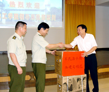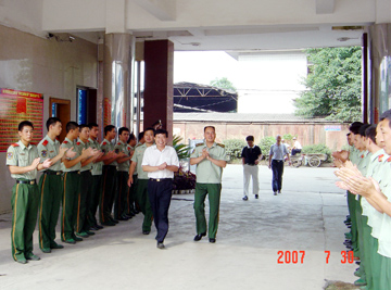 为庆祝中国人民解放军建军80周年,7月30日,在“八一”建军节来临之际,学院李祥清副院长率队冒着酷暑先后来到武警桂林市支队和广州军区综合训练基地,亲切慰问了部队官兵,对他们表示节日的祝贺,并给他们送去了慰问品。 慰问人员受到了部队首长的热情接待。武警桂林支队政委陈炜、支队长张勋玮和广州军区综合训练基地政委陶振庭、副政委周国祝、训练部部长蒋敬、政治部主任王光金、军训教研室副主任李念等分别与李副院长一行进行了友好座谈。李副院长代表学院党政感谢部队对学院军训和国防教育工作的支持和帮助,军地双方共同畅谈了友好联系,沟通了感情,进一步密切了军政军民关系,同时双方还就今年的军训和国防教育工作进行了协商。部队首长对学院的关心表示感谢,同时也表示要继续支持学院做好军训和国防教育等方面的工作。 学院参加慰问的有武装部部长、保卫处处长崔光仁,院长办公室副主任姜子亮,武装部副部长、保卫处副处长阎安明等。