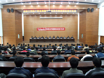 12月21日,我院与广西鱼峰集团有限公司的科技合作框架协议签约仪式在学院图书馆报告厅举行。学院院长赵艳林与广西鱼峰集团董事长韦宁分别代表双方在合作协议上签字。仪式上,合同总价达75万元的“水泥磨多重分选研磨节能技术应用”项目同时正式启动,学院材料与化学工程系陈平教授和广西鱼峰集团陆海总工程师签署了项目合同。仪式后,学院党委书记黎志逘和广西鱼峰集团董事长韦宁共同为校企共建的工程技术研究开发中心揭牌。校企双方的合作与发展由此开启了崭新的一页。 学院党委书记黎志逘在签约致词中介绍了学院改革与建设的成绩。他指出,近几年,学校在教学、科研、管理、学科建设、师资队伍建设、人才培养、社会服务等方面取得了显著的成绩,办学规模、办学质量和办学效益显著提高,各方面工作取得了长足进步;学校现有的学科专业中有60%属于广西工业化、城镇化建设和北部湾经济开发的重点领域,在为广西培养有色金属开发和利用、地质灾害防治、防灾减灾工程资源节约和环境保护、材料科学与工程城镇化建设等高级工业人才方面,不仅具有区内其他高校难以替代的特殊作用,而且在培养经济管理和旅游管理高层次专业人才和社会服务方面也具有很大优势。他还特别介绍了学校的材料与化学工程学科目前已经拥有一支较强的科研队伍、较好的科研技术条件和较高的研究实力,并在全区享有较高的声誉。黎志逘书记在发言中指出,广西鱼峰水泥集团作为国家重点扶持和华南地区最具影响力的水泥行业著名企业和广西重点企业,以其优异的质量和品质享誉海内外,具有很强的研究开发能力和市场拓展前景,能够与广西鱼峰集团在科技研发、人才培养、员工培训等方面开展合作,是充分发挥校企双方的优势和特色,加强学校与企业合作,教学与生产结合,校企双方互相支持、互相渗透、双向介入、优势互补、资源互用、利益共享,实现技术创新、管理创新,教育与生产可持续发展的重要途径,也是推动广西水泥行业产学研结合的良好典范,将为我们校企双方更好地发展提供良好机遇和发展空间。 广西鱼峰集团总经理杨义在随后的致词中说到,科学技术是第一生产力,企业间的竞争,最终是由产品背后所凝聚的技术支撑决定的,谁占领了技术制高点,谁将会是全球经济危机中生存下来的强者。水泥是一项传统产业,通过和桂林工学院合作,用高新技术改造和提升水泥传统产业,将是鱼峰公司在未来的市场竞争中打造核心竞争力的有力方式。桂林工学院作为广西教育科技战线的主力军,具有强大的科技优势、人才优势和创新优势。广西鱼峰集团期待以签署框架合作协议为新的起点,与桂林工学院一道把握产学研合作创新的关键环节,不断提高产学研合作创新层次和工作水平,使桂林工学院越来越多的科研成果在鱼峰生根发芽、开花结果。鱼峰集团将竭诚相待、竭尽所能,努力提供产学研合作一流的环境、一流的服务和一流的发展空间,争取把鱼峰集团和桂林工学院的产学研合作建设成广西校企合作的典范。 签约仪式由学院党委副书记张学洪主持。仪式签订之前,赵艳林院长还向广西鱼峰集团董事长韦宁、总经理杨义颁发了我院客座教授聘书。在主席台上就座的学院副院长阮百尧、院长助理华桂林、党(院)办主任莫坷、材料与化学工程系主任韦春,广西鱼峰集团有限公司技术研究中心副经理李异胜、办公室副主任李绍新,以及参加仪式的学院各系(院)党总支书记、主任、院长,分管科技工作的副主任,有关职能部门领导,材料与化学工程系的教师和学生代表,一起见证了签约。