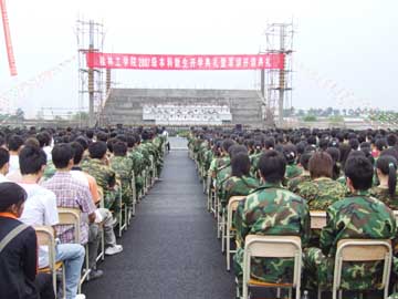 9月25日,正值我国传统的中秋佳节。上午8:00,学院领导和教师、学生代表与3000多名2007级新生欢聚在雁山校区新操场,隆重举行了桂林工学院雁山校区2007级新生开学典礼暨军训开训典礼。典礼由学院党委副书记、纪委书记赵君主持。出席和参加典礼的有:学院党委书记黎志逘、院长赵艳林、副院长李祥清、肖明贵、学院党委委员华桂林、武警桂林市支队副支队长周玉景和学院博士生导师、八桂学者、广西教学名师、各系(院)主要领导和学工部、武装部、教务处、团委等部门主要负责人及全体学工干部和军训教官。 在庄严的国歌声中,开学典礼正式开始。赵艳林院长首先代表学院师生员工对学子们正式加入桂工大家庭表示热烈的欢迎。他在简要介绍了学院的办学历史、师资力量、教学科研成果等情况后指出,学院建校50多年来,秉承“勤奋、求实、献身、开拓”的八字校风,学生勤奋学习、积极向上、志向远大、立志成才;教师治学严谨、爱岗敬业、为人师表、创新开拓;学校办学思想明确清晰、办学观念与时俱进、办学质量稳步提高、管理服务以人为本。通过一代又一代桂工人的努力,营造了良好的学术氛围和育人环境,形成了深厚的历史文化积淀。桂工的学子在这种环境下成长、成才,表现出良好的素质,近五年来,桂工的毕业生就业率均在92%左右,居广西高校前茅,这是社会对桂工办学质量和学生素质的最好评价,也是学校不断发展的活力所在。同时这也说明,只要在桂工好好学习,同学们将来是会大有作为的。为帮助新生尽快适应环境,实现思想观念、学习方法、生活方式等方面的转变,确保今后学习生活的愉快、顺利,赵院长向同学们提出了几点希望:一要心存感激,学会珍爱;二要明确目标,学会学习;三要团结友爱,学会合作;四要提高素质,全面发展。他要求同学们在学习上,要把志向与脚踏实地的努力结合起来,打好基础,学会创造,发展特长,提高素质;在生活上,要严于律已,遵纪守法,文明做人,从小事做起,从我做起;在为人上,要诚实守信,宽以待人,团结协作,知恩图报;在处事上,要善于动脑筋,创新思维,遇到难题要善于从多个角度考虑。就此次军训,赵院长也阐述了其重要意义,他希望同学们要提高认识,端正态度,以饱满的热情全身心地投入到军训中。他要求同学们在军训中要不怕苦、不怕累,服从教官的指挥,努力完成此次军训工作任务。 教师代表、南极科考专家缪秉魁博士,学生代表、资源与环境工程系朱涌峰,新生代表、土木系王乐乐,武警周玉景副支队长分别在大会上发言。缪博士在发言中向新生介绍了自己作为“土生土长”的桂工老师在桂工成长的经历和取得的成绩,并勉励同学们要持之以恒地学习,要坚定信念,树立远大抱负,为成就美好的未来而努力。朱涌峰代表所有桂工学子从学习、生活、投身实践几方面对新生们提出了建议。王乐乐同学代表新生表示:要努力学习,做一个勤学好问的学生;要严格要求自己,做一个诚信有礼的学生;要全面磨炼自己,做一个全面发展的学生;要与时俱进地锻炼自己,做一个走出校门就能报效祖国、回报社会的有用人才。周玉景副支队长作了军训动员讲话。他强调了组织好大学生军训的重要性,要求广大参训新生服从命令,听从指挥,共同努力把军训工作做好。 随后,全体新生郑重宣誓:牢记历史使命,志存高远,立志成才;恪守社会公德,仁爱互助,勇于担当;崇尚科学理性,明辨是非,追求真知;笃行勤学深思,奋发有为,完善自我;秉承传统美德,明理修身,心怀感恩;不忘国家期盼,奉献社会,报效祖国! 党委书记黎志逘在讲话中要求新生同学们,要进一步明确上大学的目的和意义;要热爱学习、刻苦学习;要艰苦奋斗、努力进取。针对学院发展和新校区的建设情况,他要求同学们搞好学习,热爱校园,支持、理解并积极参与学院的建设,为学院的建设发展贡献自己的力量,最终用实际行动报答党和父母的关心,报答老师的教育。 典礼在雄壮的《歌唱祖国》的歌声中圆满结束。