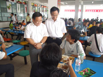 黎书记、赵院长在学生食堂看望新生