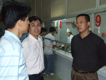 赵艳林院长(中)、张学洪副书记(右一)在博文学院学生食堂检查工作