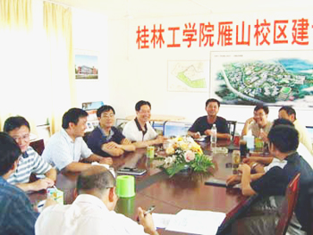 8月9日上午,学院院长赵艳林,副院长周德俭,副院长阮百尧到雁山校区检查指导工作,并会同学院党委副书记赵君,副院长、雁山校区建设指挥部指挥长肖明贵以及新区建设领导小组成员在指挥部会议室召开了雁山校区工作座谈协调会。 会上,雁山校区建设指挥部副指挥长陈学军汇报了雁山校区建设当前进展总体情况和2007年计划建设方案。赵院长还详细了解了8#教学楼的选用方案,并强调,教学楼建设方案的选择要从功能、风格、有效使用面积及资金节省等四个方面进行考虑,做到有计划、有步骤、统筹兼顾、有条不紊地推进。 从会上获悉,雁山校区2007年计划建设方案将启动3#、6#、7#、8#、9#教学楼、一期范围内校园景观大道的建设和二期范围的校园环道设计。