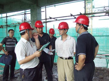 6月29日下午,学院院长赵艳林、副院长周德俭、副院长阮百尧一行到雁山校区检查指导工作,党办(院办)主任耿俊茂随同前往。 在学院党委副书记赵君、副院长肖明贵以及雁山校区建设指挥部人员的陪同下,冒着炎炎烈日,赵院长一行深入施工现场进行检查,了解雁山校区工程进展及工程质量情况。 检查结束后,在雁山校区建设指挥部办公室召开了座谈会。赵君副书记等人就雁山校区学生宿舍、道路施工、弱电工程、校园环境、新生及家长接待等方面存在的主要问题作了汇报。听完汇报后,赵院长对雁山校区的全体建设者们表示了亲切的慰问,他说,在大家的共同努力下,雁山校区建设的进度明显加快了,大家付出了很多,我代表学院衷心感谢大家。同时强调,一要继续努力,保持目前这种热情和干劲,打好最后攻坚战;二要精心组织,协调做好各配套工程;三要抓好质量,保证安全;四要积极跟政府部门和施工单位搞好协调工作;五要做好后勤保障工作,学院会在人力、物力、财力上给予大力支持。