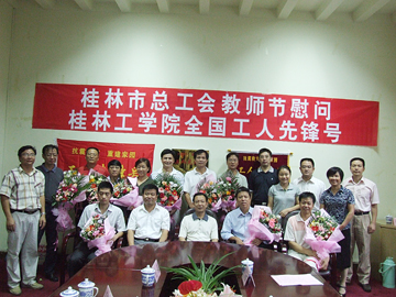 值第二十四个教师节来临之际,桂林市总工会党组书记、副主席张耀中等市总工会领导及市教育工会领导来我院慰问全国工人先锋号,开展“鲜花送劳模 喜迎教师节”活动,并与我院支援四川灾区抗震减灾技术专家组专家进行座谈。学院党委副书记、纪委书记、工会主席赵君出席会议,工会副主席陆平,学院支援四川灾区抗震减灾技术专家组专家等参加会议。在座谈会上,桂林市总工会党组书记、副主席张耀中代表桂林市总工会向我院“全国工人先锋号”专家送上慰问金和象征着美好祝福的鲜花。 张耀中副主席在座谈会上对我院支援四川灾区抗震减灾技术专家组表达了崇高的敬意,并向在教育事业上呕心沥血、尽职尽责工作的我院广大教师表达了节日的问候。张耀中副主席说,专家组发扬“一方有难,八方支援”的精神,不怕艰苦,每天工作15个小时,顶着风雨、冒着余震的威胁,对郫县9个乡镇和县城的公用建筑、民用建筑进行了技术评估和勘测,同时还充当了灾情和科普知识的讲解员,为灾区抗灾减灾工作做出了突出贡献,专家组是教师群体中的杰出代表。 我院支援四川灾区抗震减灾技术专家组成员王磊博士在会上作了发言,介绍了在四川灾区抗震救灾的具体情况。 赵君副书记说,长期以来,市总工会对我校的工会工作高度重视,十分关心,特别是在这次汶川大地震我们派出抗震救灾专家组的工作中,得到了市总工会的大力支持。赵君副书记代表学院党委和行政对市总工会的亲切关怀表示衷心感谢,并希望市总工会今后一如既往地关心支持我院的各项工作。