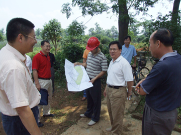 黎书记(右二)强调:“要充分利用好新校区原有绿化资源,因地制宜,搞好新校区绿化工作”