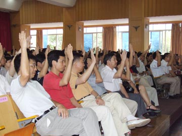6月12日下午4:30,七届一次教职工代表大会暨八届工会会员代表大会预备会议在南校区礼堂召开。预备会议由学院工会副主席蒙崇超主持,有170名正式代表参加了会议。 预备会议上,学院党委副书记、大会筹备工作领导小组组长赵君向大会作了筹备工作报告。大会审议并通过了代表资格审查报告、大会主席团成员名单和秘书长名单、大会主要议程和日程安排;通过了各代表团正副团长名单。会后,大会主席团召开了第一次会议。 学院七届一次教职工代表大会暨八届工会会员代表大会将于2007年6月13日上午8:00在南校区礼堂正式开幕。