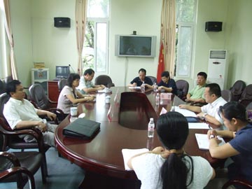 学院党委委员、人事处处长华桂林(右二)汇报工作
