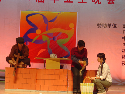 大学四年匆匆而过,你是否依然会追忆金色的童年? 桂工附小的小朋友和优秀毕业生孙巍、柳瑞瑜共同献上的歌曲《伙伴》让现场观众重温童年的天真无邪;空军学院诙谐的哑剧表演《拔牙》一出场就博得了热烈的欢呼声,点燃了全场的气氛;院学生会成员曹凯和周列献上的相声《向左走、向右走》则将困扰所有毕业生的考研还是就业问题表现得惟妙惟肖;广西师大的同学带来的拉丁舞表演《流年》将大学所经历的种种激情、欣喜、欢乐、伤感……淋漓尽致的呈现在旋律和舞步之中;毕业生郑力的一首《一生有你》拨动了在场毕业生的心弦,曾经的点点滴滴全都化作了久久回荡舞台的音符。