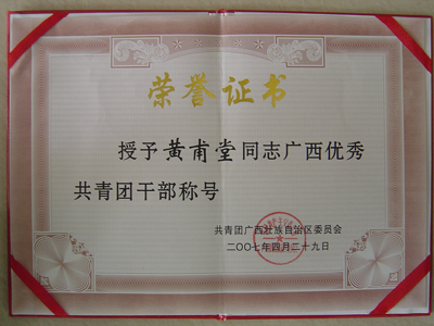 近日,共青团广西区委作出表彰决定:我院团委喜获“广西五四红旗团委”荣誉称号(全区仅有3所本科高校团委获此殊荣),土木工程系测绘05-2班团支部荣获“广西五四红旗团(总)支部标兵”荣誉称号,资环系勘技04-1班团支部荣获“广西五四红旗团(总)支部”荣誉称号,材料与化学工程系分团委书记黄甫堂同志荣获“广西优秀共青团干部”荣誉称号,学院团委委员、管理学院牛芬洁同学荣获“广西优秀共青团员”荣誉称号。