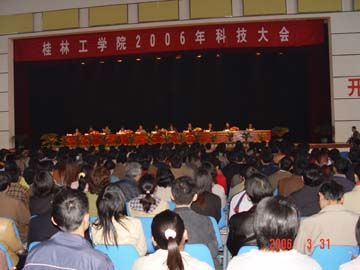 2006年3月31日下午,学院在体育馆隆重举行2006年科技大会,自治区科技厅领导、教育厅科研处领导、桂林市科技局领导莅临指导,学院全体教职工、老年科技协会代表、研究生、本科生代表参加了大会。学院党委书记阳国亮、院长赵艳林、学院副院长周德俭分别在大会上作了重要讲话,大会由学院党委副书记唐善茂同志主持。