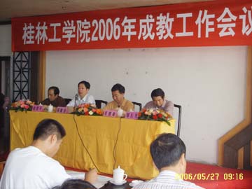 为了更好地总结、部署、交流、研究我院成人教育工作,一年一度的成人教育工作会议于2006年5月27-28日在桂林兴安召开。学校主管领导周德俭副院长、各教学单位主管成教工作领导、各函授教学站点负责人、成教院全体工作人员等共计50余人参加了会议。会议主要议题和内容包括:(1)学校主管领导周德俭副院长就成教工作面临的形势、特点和任务发表讲话、作出指示;(2)成教院吴郭泉院长对2005年的成教工作进行总结,对2006年的成教工作进行部署、提出要求;(3)成教院徐建平副院长就教学有关问题和学分制实施方案作出说明,进一步明确教学工作的有关规定和要求;(4)成教院邹长光副院长对2005年招生工作进行总结,对2006年招生形势和招生工作进行通报和部署;(5)宜州函授教学站代表就函授站招生宣传、教学工作介绍经验和体会,供与会代表参考;(6)针对会议内容和成人教育工作面临的形势与任务进行座谈、讨论和交流,对函授站点教育教学工作中的有关问题进行现场咨询和解答。会议内容丰富,代表参与积极。我们相信,通过本次会议的总结、交流和研讨,一定能为我院成人教育事业的发展注入新的思想和活力,使我院成人教育事业能在激烈的竞争中保持良好的发展态势,为学院的建设与发展做出新的更大的贡献。
