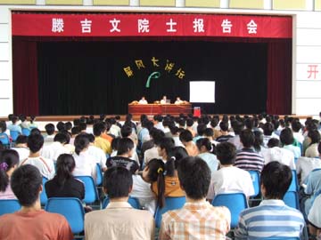 5月28日上午,我院在体育馆三楼隆重举行客座教授聘任仪式,聘任中国科学院地球科学部滕吉文院士为客座教授。聘请仪式由学院副院长阮百尧教授主持,学院党委书记阳国亮研究员向滕吉文院士颁发了我院的客座教授聘书。 聘任仪式结束后,滕吉文院士为我院大学生作了《无私奉献、艰苦奋斗、求实共进乃自主创新之本》的专题学术报告。滕院士的报告分为以下五个方面:第一、半个世纪以来中国科技发展与成就取得的历程。二、无私奉献、艰苦奋斗、团结协作、求实进取乃是中国特色的自主创新之路。第三、顶尖科学家的出现是科技创新的必然。第四、基础研究是自主创新的源泉。第五、我国当今的科技形势与国家战略需要。滕院士殷切希望大学生们,一定要继承和弘扬祖国和人民的优秀传统,必须刻苦学习,勤于实践,求实进取,勇于创新!为中华民族的伟大复兴和造福于人类做出应有的贡献! 阳书记在报告会上发表了讲话,他希望大学生们要发扬老一辈科学家们热爱祖国、献身科学、艰苦奋斗和勇于开拓的精神,并落实到今后的学习中去,早日成为国家的栋梁之材。 报告会结束后,滕吉文院士为我院屏风大讲坛题词:“育人为本、求实创新。为桂工发展而书”。