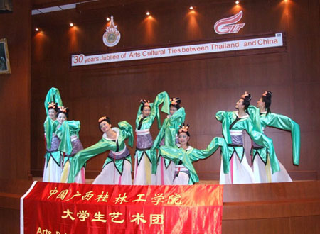 不久前,应泰国南邦市市长的邀请,桂林工学院大学生文化艺术团出访泰国,参加泰国一年一度的“水灯节”等活动,为中泰高校间的深层次文化打开了一扇交流之窗。