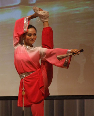 桂林工学院大学生艺术团在泰国皇家理工大学曼谷校区表演的节目《踏歌》