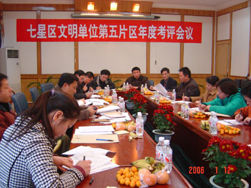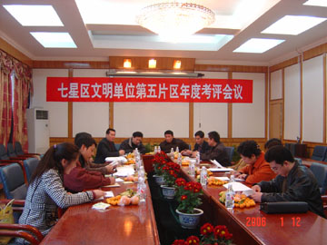 元月12日上午,七星区文明单位第五片区年度工作考评会议在我院召开。来自片区的九个单位的代表在会上介绍了各自单位在2005年开展精神文明建设工作情况。作为片长单位,我院党委宣传部于海平部长、钟克庆、洪莉春、关琼老师参加了会议。会上,钟克庆老师代表学院精神文明办作了年度工作汇报。七星区文明委江副主任,精神文明办刘延风主任到会指导。