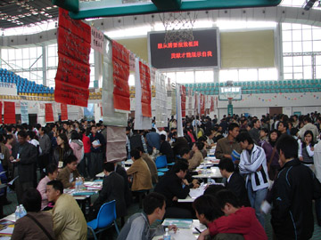 2005年11月26日,我院2006届毕业生第一次“双选”洽谈会在体育馆三楼举行。到会的用人单位共有70家,其中省外用人单位35家,桂林本地用人单位35家。共提供岗位604个,其中研究生33个;本科497个,资环系257个,土木系116个,材化系8个,电计系16个,管理学院64个,外语系11个,艺术设计系13个,旅游学院12个;专科74个。上千名学生参加了此次“双选”会。 据招生就业处副处长熊英介绍,我院2006届毕业生总计3821人,其中研究生96人,本科2449人,专科1276人。此次洽谈会需求专业面共43个,比往年要广,新增了10个,如:资源环境与城乡规划、工程管理、国际经济贸易、自动化等。2006年4月2日,我院将举行第二次毕业生“双选”洽谈会。