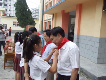 在“六一”儿童节即将来临之际,5月29日上午,学院党委书记黎志逘、院长赵艳林和副院长李祥清到学院附属小学进行慰问,为附小的学生们送上了节日的祝福和亲切的问候,并赠送了两台空调和600多册图书。 上午8点,赠送仪式在附小教学大楼前举行。3名少先队员为黎书记、赵院长和李副院长系上了鲜艳的红领巾,随后,黎书记和赵院长代表学院分别向附小赠送了价值15000元的两台空调和价值9600元的600多册图书。赵院长和李副院长在赠送仪式上致辞,祝小朋友们节日快乐、健康成长,努力学习,奋发向上,树立远大理想,早日成为祖国的栋梁。 学院党办(院办)主任耿俊茂,党委宣传部、统战部部长于海平,院办副主任姜子亮随同慰问。
