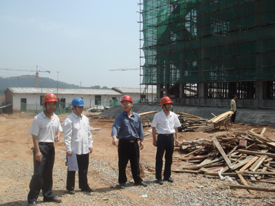 肖明贵副院长(左一)深入施工工地检查工程进度