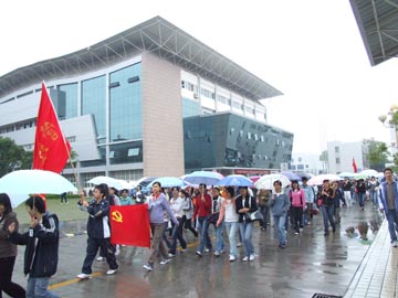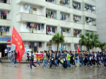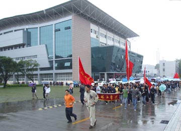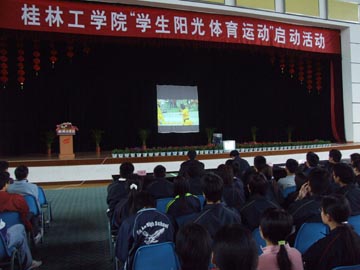 为了贯彻落实中央政治局会议精神,响应教育部、国家体育总局、共青团中央的号召,进一步加强青少年体育工作,在学院迅速掀起“学生阳光体育运动”热潮,按照自治区教育厅《关于全面启动广西学生阳光体育运动的补充通知》(桂教体卫艺〔2007〕43号)的要求,4月29日上午10时,学院与全国同步举行了“学生阳光体育运动”启动仪式。学院组织全院学生分四个会场收听或收看中央人民广播电台、中国教育电视台现场直播的北京现场启动仪式。学院党委书记黎志逘,院长赵艳林,副院长肖明贵,党委委员、人事处处长华桂林,党办、院办主任耿俊茂,党委宣传部、统战部部长于海平,学生工作部部长熊英,体育教学部主任冯玉斌在体育馆三楼礼堂的主会场参加了启动仪式。学院党委委员、组织部部长赵君主持仪式。 赵艳林院长在启动仪式上代表学院党委、行政对学生阳光体育运动的正式启动表示热烈的祝贺!赵院长在讲话中向全体学生阐述了开展阳光体育运动的意义,他号召学生走向操场、走进大自然、走到阳光下,积极投身到阳光体育运动中去。他指出,在高校中开展学生阳光体育运动,是新时期加强大学生体育活动、增强大学生体质的重要战略举措,对促进大学生的身体健康以及学习效率的提高和品格的形成,都将起到积极的促进作用。他希望广大学生积极响应教育部、国家体育总局、共青团中央的号召,按照学院的统一安排,坚持遵循教育性、科学性、趣味性、全面性的原则,坚持自主自愿与积极引导相结合的原则,坚持体育课与课外体育活动相结合的原则,走向操场、走进大自然、走到阳光下,积极投身到阳光体育运动中去,不断加强体育锻炼,积极磨炼意志,在学院掀起体育锻炼的热潮,在运动中展示蓬勃的朝气,在运动中培养体育锻炼的良好习惯,在运动中练就健壮的体魄和坚强的品格,成长为全面发展的优秀大学生,以实际行动迎接2008年北京奥运会的到来,以健康的体质、健壮的体魄、坚强的品格为党和国家的建设事业作出更大的贡献。 学院党委书记黎志逘用宏亮的声音宣布:桂林工学院“学生阳光体育运动”全面启动!随后,雄壮有力的运动员进行曲响彻校园,四个会场的近万名学生汇集到体育馆前,他们以系(院)为单位,举着系牌和系旗,沿着校园道路,集体慢跑一个小时。尽管下着小雨,但同学们以高涨的热情和饱满的精神风貌投入到这一活动。在我院体育场馆里,学院还组织开展了篮球、排球、羽毛球等球类健身活动。 学生普遍反映,国家如此大规模地开展阳光体育运动充分说明,社会对我们的要求不仅是掌握知识,还要求我们有健康的体魄。通过参加阳光体育运动可以培养我们具有良好的体质和坚强的品格,进一步增强我们的锻炼意识和团队意识,从而促进我们身心的健康成长,这对构建和谐校园具有非常重要的意义。 活动中,学院领导对我院今后进一步开展“学生阳光体育运动”工作作了重要部署。同时,还对所有的体育活动场馆(所)及体育设施进行了视察,并要求体育教学与相关管理部门认真做好日常管理和维护工作,使其随时保持着良好的可运行状态,以满足和保证学院“学生阳光体育运动”的顺利开展。 桂林电视台、桂林日报等媒体记者对我院本次活动进行了采访。