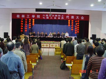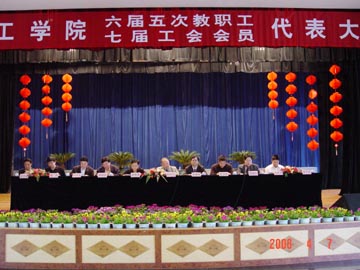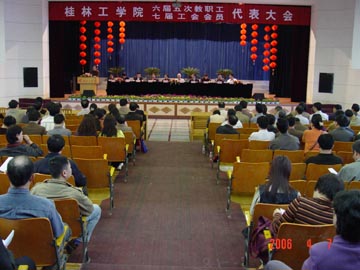 2006年4月7日下午,微风和煦,春意盎然,学院六届五次教代会、七届工会会员大会的代表准时步入会场,各位代表将审议并表决院长工作报告、财务年度报告、“十一五”发展规划等几个主要报告。 大会首先由各组负责人进行了会议各项报告审议情况的汇报.在汇报中各位代表认为学院2005年是取得重大进步与成绩的一年,在过去的一年里,全体教职工在学院党委及行政的正确领导下,积极进取,奋力拼搏,为落实“两申”目标做出了很大的成绩,院长报告客观务实。对2006年的工作计划代表们认为切实可行,为广大教职工指明了很好的方向。对于2005年的财务结算及2006年的财务预算方案,代表们也进行了认真审议,一致认为,学院近年发展很快,经费是很重要的保障,学院积极采取广开财源、增收节支的办法,充分体现了学院的勤俭办学理念,对2006年的财务预算方案表示认可。认为“十一五”发展规划思路清晰,数据具体,结构平衡,鼓舞人心,催人奋进,为学院下一个五年发展打下了坚实的基础。对于设立系院级教职工代表大会及教职工申诉制度表示欢迎,一致认为应落到实处,发挥代表及大会制度的作用,不断推动学院建设事业。在肯定成绩的同时,代表在审议报告时也提出:第一,应加快建立节约型校园管理机制,充分发挥人、财、物的作用,做到人尽其才,物尽其用,杜绝浪费。第二,应大力加快人才工程建设,加快培养和引进力度,建立合理的人才评价机制。第三,要重视教育教学质量的提高,要多方位加强教学质量建设,整合教学资源,打造学院质量的品牌效应。第四,要加大力度整治校园安全及文明建设,着力构建和谐校园,推进校园精神文明建设,在大学生中加强社会主义荣辱观的教育。第五,要不断提高办事效率,实行项目责任制,推进办事效率的不断提高。第六,要充分考虑教职工福利待遇提高与学院发展的关系,要考虑到学院各方面人员的得益,做到兼顾公平,对离退休人员待遇、教学工作量考查、科研工作量核定、医疗保健等等制度进行健全和完善,不断调动大家的工作积极性。 在各小组长发言完毕后进行大会表决,一致通过了《院长工作报告》、《年度财务工作报告》、《学院“十一五”发展规划》、《院系教职工代表大会暂行规定》、《教职工申诉条例》等五个文件。 党委书记阳国亮作了发言。他说,各位代表在这次会议上很认真地参与会议的各项内容,体现了关心学院发展事业的心情。他希望各位代表在会议结束后将会议精神传达到每一位教职工,进一步凝聚力量,统一思想,加快进步。他还指出,今年教代会、工会要重点抓好三件大事。第一,要把握好形势,进一步总结经验,加快发展步伐;第二,要在全院范围内大力推进社会主义荣辱观教育,加强“桂工精神”教育,把“八荣八耻”教育跟“桂工精神”及学院发展大计结合起来,推进学院建设步伐;第三,要充分发挥工会职能,维护教职工权益,把工会工作与学院中心工作结合起来,充分听取代表及教职工们的意见,照顾和平衡各岗位人员的利益,创造条件落实各项建设与提案。 最后,大会在庄严的国际歌声中胜利闭幕。