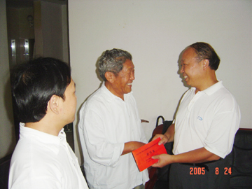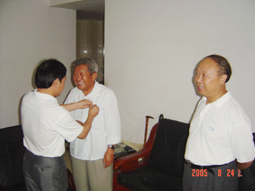 为纪念中国人民抗日战争暨世界反法西斯战争胜利60周年,近日,受自治区党委、区人民政府委托,学院党委书记阳国亮、副书记唐善茂在组织部部长赵君、副部长莫坷、离退处处长陈开亿、副处长于尔佐的陪同下,走访慰问了我院抗战老同志、老战士柳林和高善玲,给他们佩带了由中共中央、国务院、中央军委颁发的中国人民抗日战争胜利60周年纪念章和送去了由自治区党委、区人民政府发的慰问金,并分别与他们合影留念。 当阳书记来到抗战老同志柳林家时,亲切地握着柳林同志的手说:“今年是抗日战争胜利60周年,您老为夺取抗日战争胜利、新中国的成立和民族的独立,做出了贡献,为学校的建设与发展奉献了毕生精力,党和人民是不会忘记你们的。” 当阳书记来到抗战老战士高善玲家时,双手紧紧地握住高老的手说:“过去你们不怕流血牺牲,为抗日战争的胜利作出了贡献,党和人民不会忘记。”党委书记阳国亮同志再三叮嘱两位老人一定要注意保重身体,祝他们健康长寿。 两位抗战老同志、老战士激动地说,感谢党和政府对他们的关心和爱护。对学院领导在百忙之中登门慰问他们表示衷心地感谢。