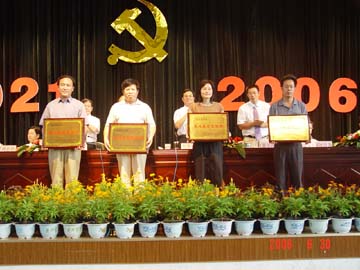 6月30日下午,学院在体育馆三楼隆重召开庆祝中国共产党成立85周年暨表彰大会。学院全体共产党员,民主党派代表、无党派代表参加了庆祝大会,学院党委书记阳国亮,党委副书记、院长赵艳林,党委副书记、纪委书记唐善茂,党委副书记张学洪,副院长周德俭、阮百尧、肖明贵,党委委员赵君、解庆林出席了大会并在主席台就座。大会由学院党委副书记、纪委书记唐善茂主持。 在庄严雄壮的《国际歌》乐曲声中,与会人员全体起立,庆祝大会正式开始。学院党委副书记、院长赵艳林在大会上宣读了自治区高校工委关于表彰先进基层党组织、优秀共产党员、优秀党务工作者的决定和学院关于表彰先进基层党组织、优秀共产党员、优秀党务工作者的决定。我院机关党总支第5支部、资环系党总支、材化系党总支、旅游学院党总支学生第2支部荣获全区高校先进基层党组织,王德安、李景文、张发爱等10名共产党员荣获全区高校优秀党员荣誉称号,石柱鑫、江云清、莫坷、耿俊茂、胡祖生5人荣获广西高校优秀党务工作者荣誉称号。获得学院先进基层党组织的总支或支部共12个,优秀党员97名,优秀党务工作者7名。大会为以上获奖先进集体和个人举行了颁奖仪式,还为在6月29日晚廉政歌曲大赛中的获奖单位举行了颁奖仪式。 先进基层党组织代表材化系党总支书记胡祖生、优秀共产党员教师代表李景文、优秀共产党员学生代表朱宗强、优秀党务工作者代表黄中康先后在大会上发言。他们表示,今后要再接再厉,加强学习,努力工作,充分发挥共产党员的先锋模范作用,充分发挥基层党组织的核心作用和战斗堡垒作用,为学院“两申”目标的实现作出新的更大的贡献。 在大会上还举行了预备党员入党宣誓仪式。由学院党委组织部副部长伍飞军领誓,学院预备党员在党旗下进行了庄严的宣誓。 学院党委书记阳国亮发表了讲话。阳书记首先代表学院党委向学院全体共产党员致以节日的问候,向获得自治区高校工委和学院党委表彰的先进基层党组织、优秀共产党员和优秀党务工作者表示热烈的祝贺,向在党旗下庄严宣誓的新党员们表示热烈的祝贺,并希望他(她)们恪守入党誓言,为共产主义事业奋斗终身。在巩固保持共产党员先进性教育活动成果、雁山新校区建设已经启动、“两申”工作正在深入推进,50周年校庆庆典即将到来,我院改革与发展的任务极其艰巨而繁重的当前形势下,阳书记向学院广大共产党员提出三点希望:一是要继续发扬和巩固先进性教育活动的成果,建立先进性教育活动的长效机制;二是要切实加强各级领导班子建设,更好地发挥各级领导班子的领导核心作用;三是要充分发挥党组织的政治核心、战斗堡垒作用和党员的先锋模范作用。最后阳书记号召学院全体共产党员,要更加紧密地团结在以胡锦涛同志为总书记的党中央周围,高举邓小平理论伟大旗帜,认真实践“三个代表”重要思想,全面贯彻党的教育方针,按照学院党委、行政的有关部署,进一步弘扬桂工精神,同心同德,艰苦奋斗,励精图治,开拓创新,为创造桂林工学院美好明天而努力奋斗,为桂林工学院的蓬勃发展作出新的更大的贡献!