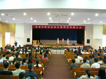 11月13日下午,桂林市研究生协会第四次代表大会在我院南校区礼堂隆重举行,此次会议由桂林工学院研究生会承办。学院党委副书记唐善茂、学工处处长梁军、研究生处副处长饶似涓、桂林电子工业学院研究生部副主任顾正飞、广西师范大学研究生处副处长、研究生思想政治教育办公室主任陈闻等领导出席了大会。大会在庄严的国歌声中拉开帷幕,唐书记作了热情洋溢的讲话,他首先对历届研究生协会所做的工作予以高度评价,并对我国当前研究生教育的形势作了分析;同时也对新的研究生协会成员班子提出了希望和要求,希望新一届研究生协会能够继续团结协作,办出自己的特色,使之更好的为广大研究生服务,动员广大研究生积极参加广西的建设,为广西的发展作出自己的贡献。 会上,各位代表审议通过了桂林市研究生协会第三届委员会的工作报告。来自桂林工学院、广西师范大学、桂林电子工业学院的研究生代表也分别作了发言,之后大会采用无记名投票的方式选举产生了桂林市研究生协会第四届委员会,我院朱竹江同学当选为桂林市研究生协会第四届委员会主席。 选举结束后,来自三校的文艺表演者向各位代表奉献了二胡演奏、美声独唱、三人小合唱等精彩纷呈的节目。