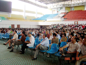 2005年11月10日下午,学院发展目标行动计划暨整改方案实施动员大会在体育馆三楼召开。学院党委书记阳国亮,院长赵艳林,副书记唐善茂、张学洪,副院长阮百尧等领导,自治区高校工委保持共产党员先进性教育活动督导三组组长李善辉参加了这次会议。大会由院长赵艳林主持,阳书记作了动员报告。阳书记的报告讲了以下三个主要内容:(一)实现学院发展目标行动计划的重要性;(二)全面了解行动计划的基本精神和主要内容;(三)实现学院发展目标要达到的要求。阳书记的报告,对学院全面推进先进性教育活动的整改工作,实现第二次党代会确定的“12455”总体目标,进行了更扎实更深入的部署,对每个党员、每个党员干部和每个党组织,提出了更具体更严格的要求。