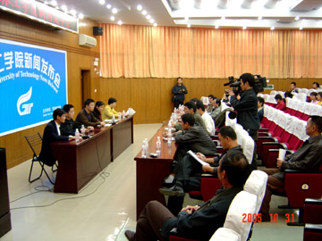 10月31日下午,由党委宣传部主办的桂林工学院新闻发布会在9501教室召开。新闻发布会由党委宣传部部长于海平主持,学院党委书记阳国亮、党委副书记张学洪、研究生处副处长饶似娟、招生就业处副处长熊英、国际交流处赫德老师出席了新闻发布会。参加发布会的有新华社、中国新闻社、中国改革报、中国产经新闻报、中国旅游报、西部时报、法治快报、广西日报、广西电视台、广西电台、桂林日报、桂林电视台、桂林电台、桂林晚报、南国早报等15家媒体的记者和桂林工学院大学生记者团记者等。 党委副书记张学洪首先进行了新闻发布,他说,“第六届全国地方性本科院校招生工作协作会”将于11月1日—11月4日在我院隆重召开,来自26个省、市、自治区的166所高校将参加本次招生协作会,这次招生协作会将总结和研讨新形势下招生工作的新经验和新策略,进一步加强跨区域跨校际间的协作与交流,促进生源结构的进一步优化。届时,我院将和与会的各高校签署对等招生协议,为明年的跨省招生提前作好准备。张学洪副书记还告诉记者们,我院大学生文化艺术团将在学院党委书记阳国亮的带领下,于11月13—23日访问泰国,参加泰国一年一度的“水灯节”活动。同时,对泰国部分高校进行考察访问和学习,以促进两国校际间的文化交流与留学生工作的开展。 随后,举行了答记者问,我院领导对记者提出的问题做了一一回答。阳国亮书记强调,我院秉承为广西教育发展服务的宗旨,努力办好“第六届全国地方本科院校招生协作会”,他表示,此次招生协作会将会促进广西教育事业的发展,使广西在校学生能够更多的走向全国各大高校,并欢迎各大高校到广西招生,更好地落实“科教兴国强国战略”、“人才强国战略”。关于我院大学生文化艺术团出访泰国,他指出,这将会加强与东南亚各国的文化交流,也是我院大学生国际文化交流的一次重要突破,对推动我院办学事业的发展具有重要意义。 本次新闻发布会全面介绍了我院在招生、就业及国际文化交流等方面的情况,让更多媒体了解桂林工学院,对宣传“桂工精神”也起到了积极的作用。 为活跃本次会议的氛围,促进相互之间的交流与沟通,学院将会在11月1日晚在体育馆三楼为大会组织专场招待文艺晚会。