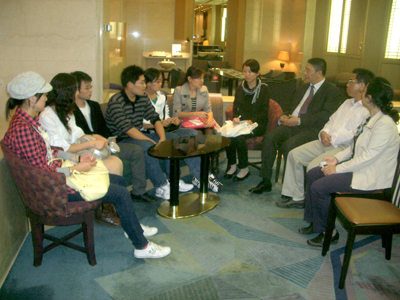 肖明贵副校长(右三)与我校在日本进修师生座谈