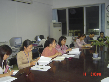 10月14日晚8:00,外语系党政领导及各教研室、资料室的主要负责人在教八楼外语系资料室召开紧急会议,商讨外语系在本次区教育厅专家组莅临我系指导工作中发现的问题。与会者有外语系党总支书记张雄老师、外语系主任田穗文教授、外语系党总支副书记范玲老师、外语系副主任陈文乾老师、外语系副主任莫运夏老师、外语系副主任黄廷慧老师、大学英语教研室主任(II)唐渠老师、专业英语教研室主任胡金老师、日语教研室主任张军老师以及其他有关领导和老师。
