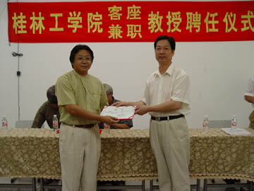2004年9月23日,我系在7401教室举行了桂林工学院兼职教授、客座教授聘任仪式,受聘的教授是:桂林市高等师范专科学校美术系主任刘绍荟教授;桂林旅游高等专科学校工艺系帅立功教授;广西师范大学美术系帅民风教授。院人事处处长赵君同志主持了聘任仪式,院副院长周德俭教授出席聘任仪式并颁发聘书。三位受聘教授发表了热情洋溢的讲话,副院长周德俭教授代表学院对刘绍荟等3位教授受聘我院兼职和客座教授表示忠心的感谢,相信3位教授的受聘必将对我院艺术设计系的学科发展起到非常重要的促进作用。