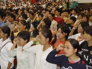 9月10日上午,随着2004级新生开学典礼在体育馆礼堂举行,3200名新生的大学生活宣布开始。这是我院建校以来招收新生最多的一年,因此开学典礼显得格外隆重。开学典礼由院党委副书记张学洪主持,院领导、博士生导师、各系部主要负责人依次在主席台就座。