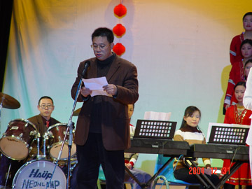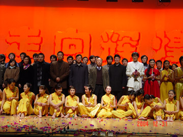12月31日晚,学院体育馆三楼礼堂流光溢彩、彩球高挂、歌声嘹亮、舞姿飞扬、掌声阵阵、座无虚席,由学院党委宣传部、学工处、团委主办的2005年元旦文艺晚会在这里隆重举行,党委书记阳国亮、院长赵艳林、副书记张学洪、副院长阮百尧、离退休老干部和千余名师生观看了演出。 张学洪副书记在晚会开始前,代表学院致新年祝词,他回顾了我院2004年的总体工作,展望了学院的美好未来,并代表学院党委和行政向全体师生过去一年所取得的成绩表示热烈的祝贺,同时也向大家致以新年的衷心问候和祝福。 19:30,一曲雄壮豪迈的大合唱《祖国颂》拉开了晚会的帷幕,整台晚会形式多样,内容主题积极向上,融校园生活、地方风情、桂工特色和爱国主义于一体,将观众带入了祥和、欢乐的节日气氛中。 晚会在一曲优美的《难忘今宵》中结束后,学院领导走上舞台与与演员们亲切握手并合影留念。