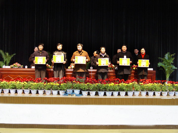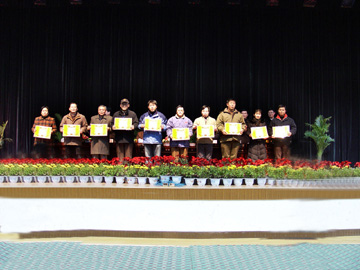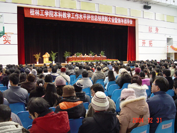 12月31日下午4:00,本科教学工作水平评估总结表彰大会暨新年团拜会在体育馆三楼礼堂隆重召开。会上,资环系等19个迎评先进集体、吴晓鸣等102名迎评先进个人受到表彰,院领导为获奖者颁了奖。院党委副书记张学洪宣读了学院的表彰决定,决定指出:在学院迎接教育部本科教学工作水平评估期间,全院教职员工在学院党委、学院行政的领导下,弘扬“桂工精神”,上下一心,团结一致,全力迎评,为学院在教学评估中取得良好的成绩做出了积极的贡献,涌现出一批先进集体和先进个人。决定希望全院各单位、各部门和广大教职员工以先进为榜样,向先进学习,积极进取,踏实工作,以实际行动为实现学院发展的新跨越而努力奋斗。