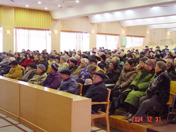 12月31日上午,院领导阳国亮、赵艳林、张学洪、周德俭在民族基础教学部礼堂向到场的300多名离退休老同志、老教师通报评估情况,同时向他们祝贺新年。