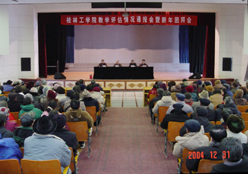 院党委书记阳国亮在会上讲了话,他首先代表院党委感谢离退休老同志多年来为学院发展建设所做出的贡献,并向老同志致以新年祝福。在谈到评估工作时他认为,评估促进了学院各方面发展,无论从校园外在面貌还是内在的学科、制度建设方面都取得了预期效果。对此,教育部专家组也给予了很高评价。特别是在评估中表现出来的桂工精神,更受到专家组的高度赞扬。