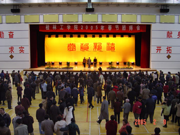 正月初一头一天,家家户户乐开颜。学院职员工及其家属、留校过年的学生齐聚体育馆三楼大厅,参加一年一度的春节团拜会,大家相互握手,互致问候,整个大厅一派喜气洋洋。