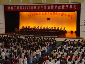 2004年,我院共有毕业生1863人,其中33名毕业生获得广西优秀大学毕业生称号;194名同学光荣入党;148名同学考取研究生,54人获得硕士学位,4名同学获得选调生资格,1名同学参加“大学生志愿服务西部计划”。学院副院长周德俭教授为获得硕士学位的毕业生和获得学士学位的毕业生代表颁发了学位证书。